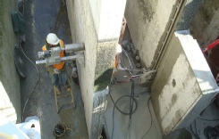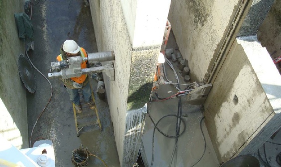 Required removal of 30+ concrete beams that were reinforced with 6 number 18 rebar per beam. The use of the wire saw and a large crane were required to complete this project.